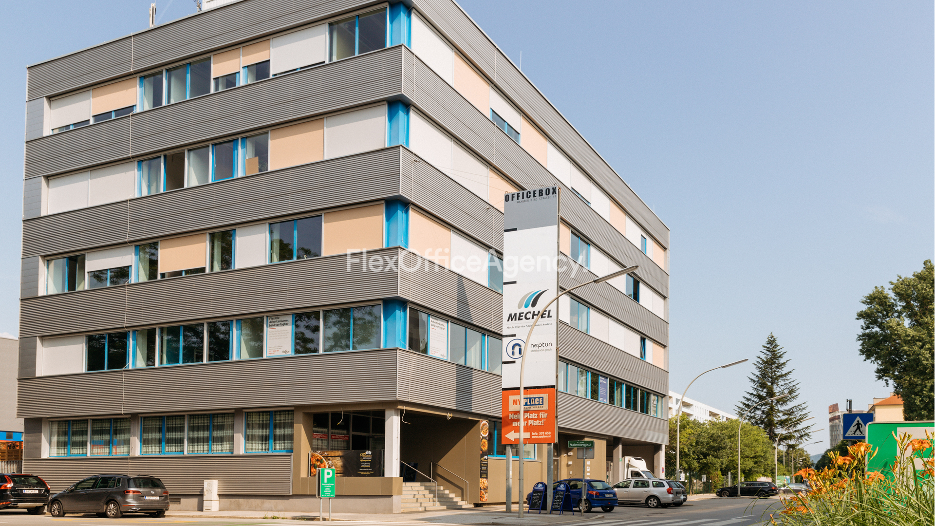 Das Business Center liegt nahe des Grazer Hauptbahnhofes, am Rande des Stadtentwicklungsprojekts „Smart City“. Neben klassischen Büros, Coworking Spaces und virtuellen Büros können hier auch Konferenzräume und Tagesbüros angemietet werden. In dem fünfgeschossigen Gebäude mit Personenaufzug befinden sich rund 170 Arbeitsplätze auf drei Etagen. Ergänzend werden Ihnen verschiedene Servicepakete angeboten, welche genau auf Ihre Bedürfnisse zugeschnitten werden. Im Erdgeschoss des Gebäudes befindet sich zudem ein Café, in welchem Sie ihre Mittagspausen entspannt verbringen können.