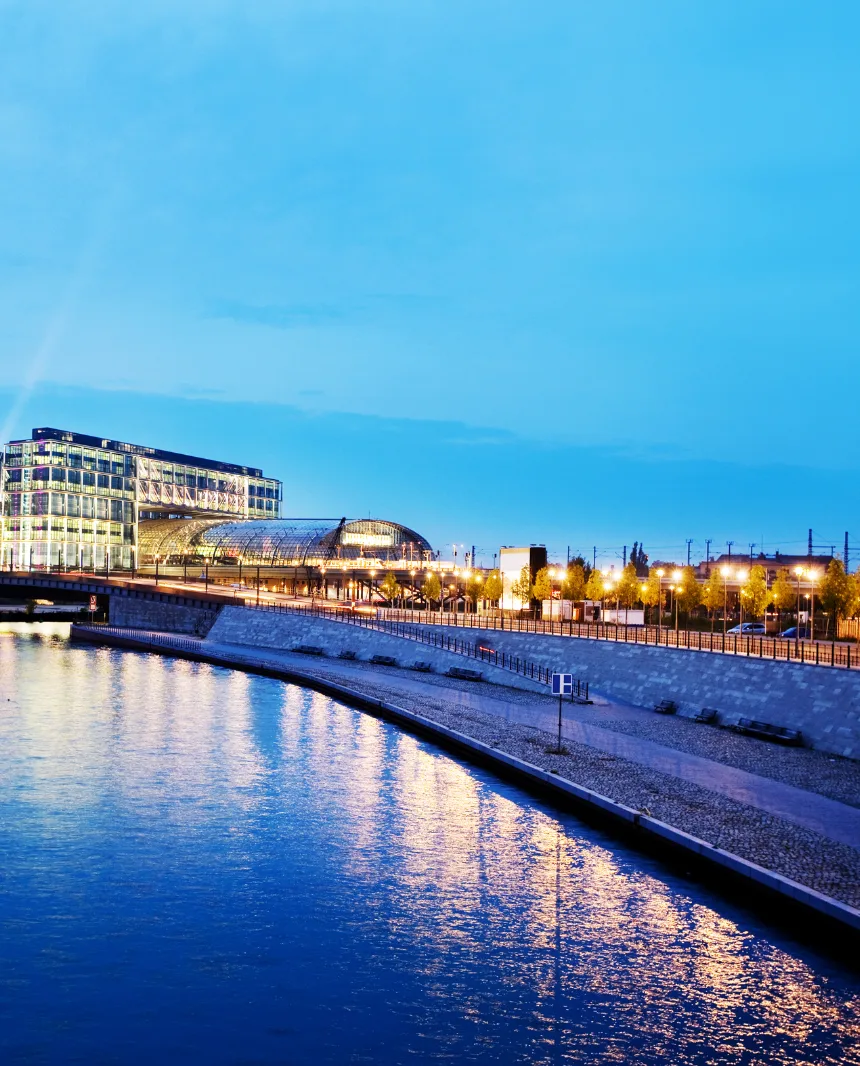 Berlin Central Station is situated in the Moabit district of the Mitte borough, positioned on the northern edge of the Government District. Its main entrances lead to Europaplatz and Invalidenstraße in the north, and to Washingtonplatz and the Spree in the south. Surrounding the station are the Spreebogenpark, the Federal Chancellery, and the Paul-Löbe-Haus. The Lehrter Stadtquartier, designated as a development area, was the original site where the Central Station was first constructed. Over time, additional structures, primarily office buildings and hotels, have been established in this area. Around the Central Station, various office centers offer office spaces suitable for businesses of any size, whether it’s at Europaplatz, overlooking the Spree at Humboldthafen, or in Rahel-Hirsch-Strasse.