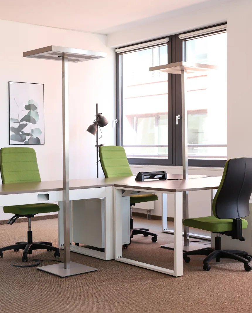 We offer office options in Ostend, such as on Hanauer Landstrasse, Lindleystrasse, Light Tower, or Ferdinand-Happ-Strasse, providing an all-inclusive package of services to ensure a productive work environment. Amenities include fully equipped and furnished office spaces for individuals and various team sizes, high-speed Wi-Fi, printers/copiers, cleaning services, and community spaces with tea/coffee kitchens. Our professional team is always available to support you with any office-related queries.