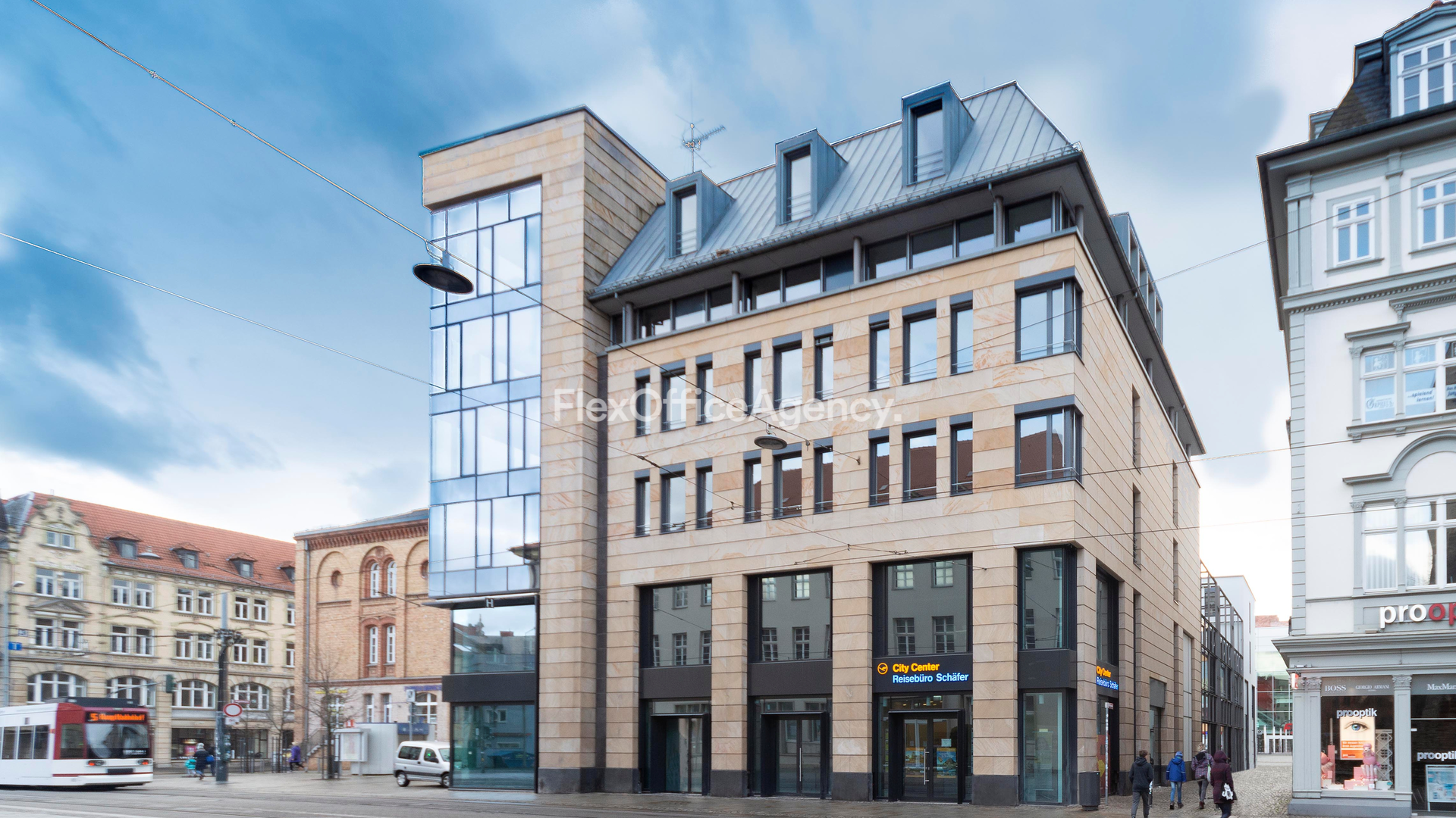 The Business Center is located on Bahnhofstrasse and it is only a two-minute walk to Erfurt Central Station. Erfurt's city center with its various retailers, restaurants and cultural facilities is only a few hundred meters from the Center. You are also well supplied on Bahnhofstrasse and there is a public car park around the corner.